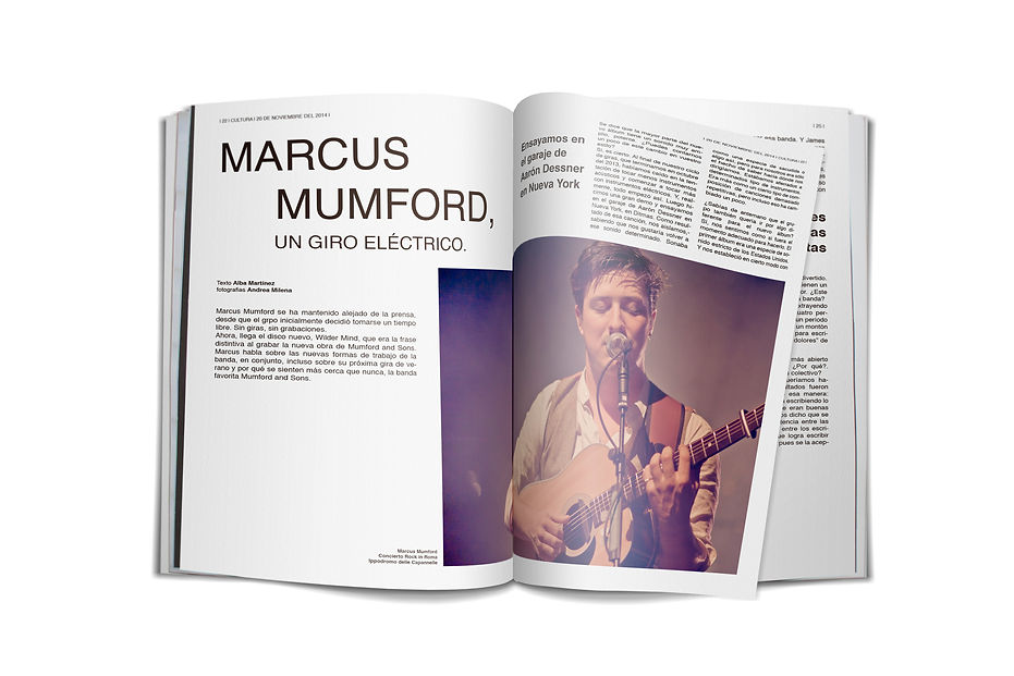 Maquetación de la entrevista a Mumford&Sons del lanzamiento de su nuevo álbum para un dominical.